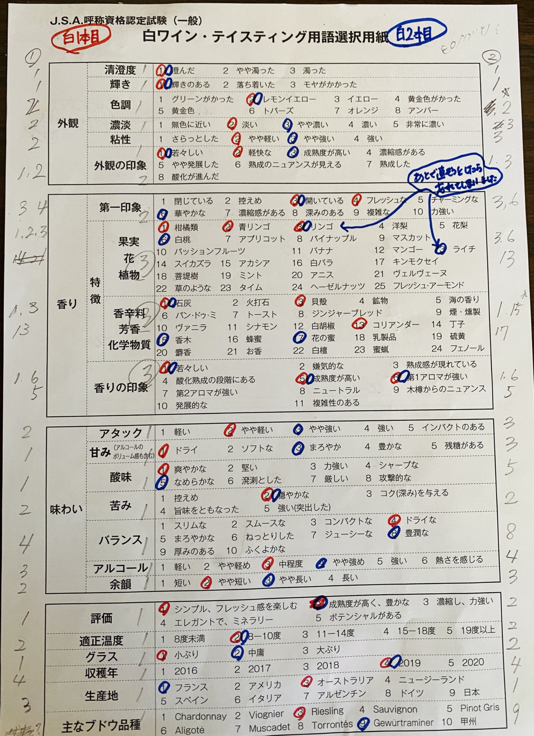 酸味が厚ぼったいようなリースリングの酸を感じました。フランスと最初解答しましたが、変な匂いがもしかしてペトロールなのかな? と思ったのと、白2本目もフランスでは違うのかなと、オーストラリアに変更してしまいました。
