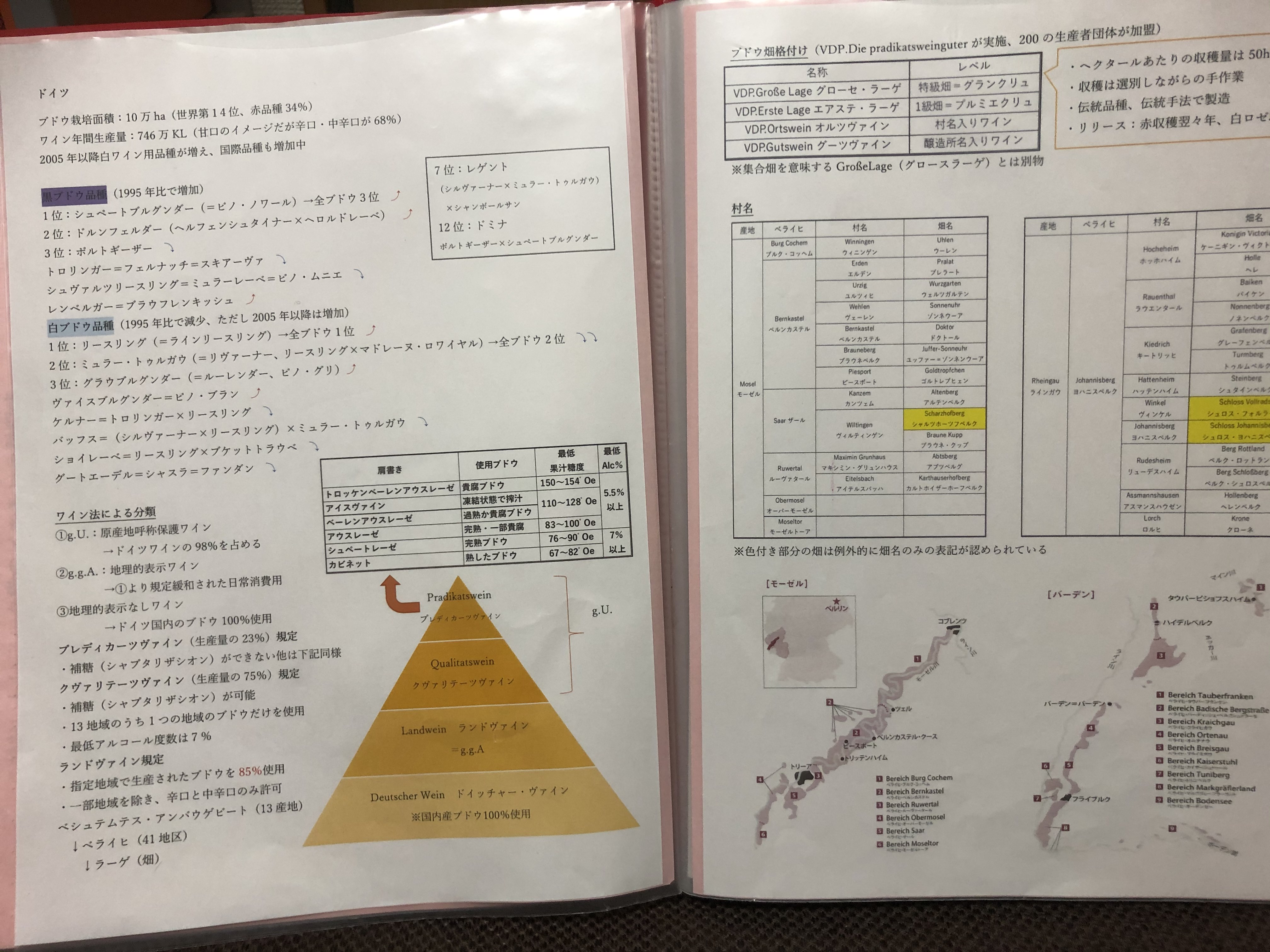 この時点で問題を解いても全く歯が立たないことがわかり、また参考書や教本を読み込んだだけではどうしても勉強した気にならないと判断し、フランスから順番に自分で資料をまとめていくことにしました。(概論やサービスの範囲は参考書の方がしっかりまとまっているので、基本的に各産地のみ)