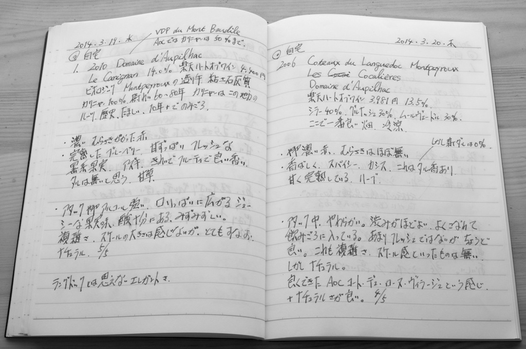 私はもう30年近くの間、飲んだワインのテイスティング・コメントを小さなノートに書き込んでいます。上の画像をごらんください。今62冊目です。